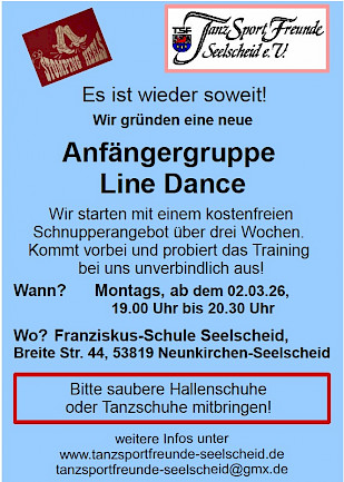 Wir starten mit unserer neuen Linedance-Gruppe! Die Gruppe ist wieder für (absolute) Anfänger gedacht und soll unsere bestehenden Gruppen (1a, 1b und 1c) ergänzen.